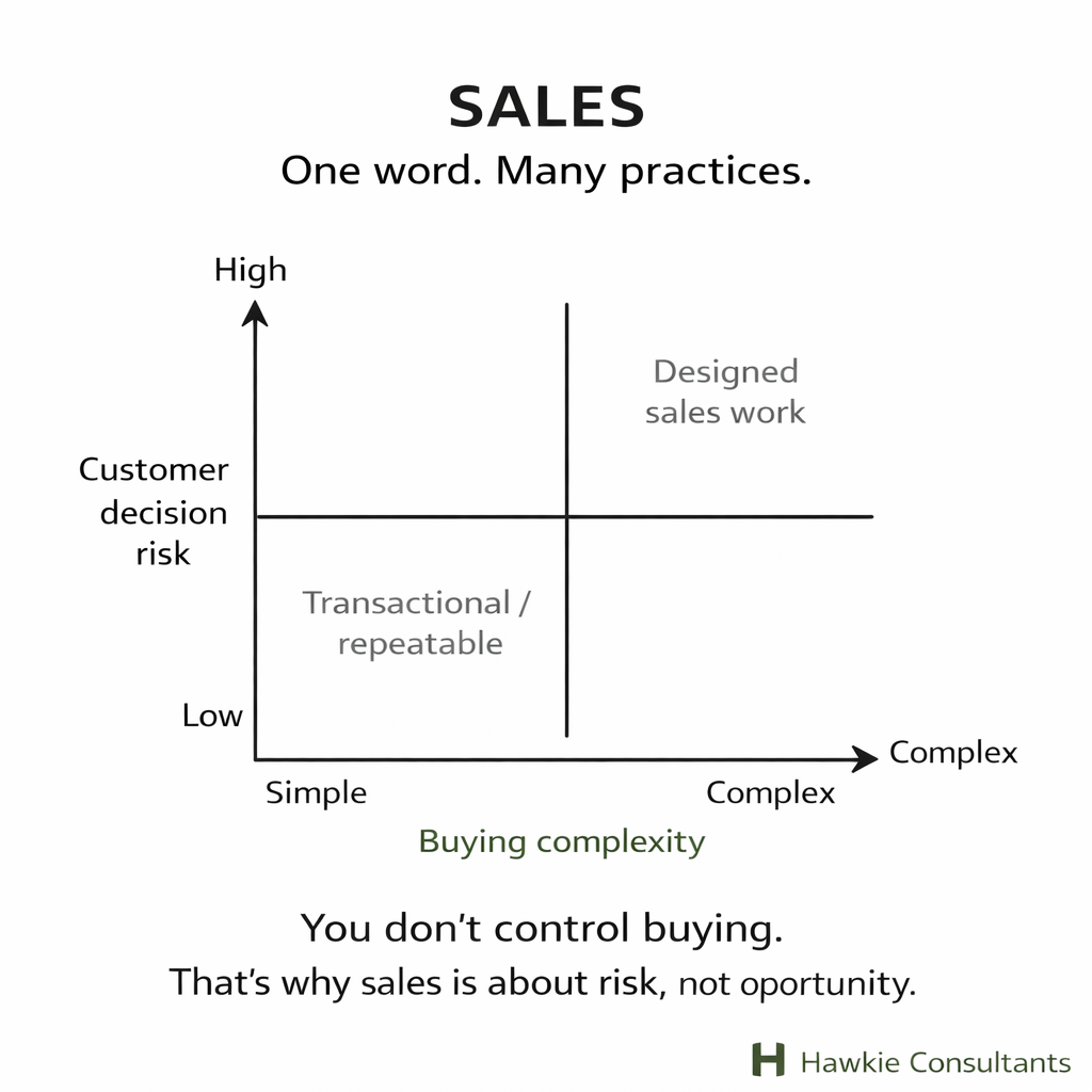 When buying is simple, sales can be standardized. When buying is complex, sales must be deliberately designed. Treating all sales the same is what breaks forecasts, behavior, and trust.